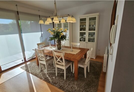 Precioso chalet adosado seminuevo, en Villarcayo. Junto al campo de golf de Villarias. 180 m2 utiles en dos plantas, con tres dormitorios, salon comedor, cocina equipada, dos baños y aseo. Amplio garaje. Porche. Excelentes vistas al campo del golf y al lago. 200 m2 de jardin. Amueblado. Calefaccion electrica y estufa de pellets. Urbanizcion privada con piscina, pista de padel y zonas comunes.